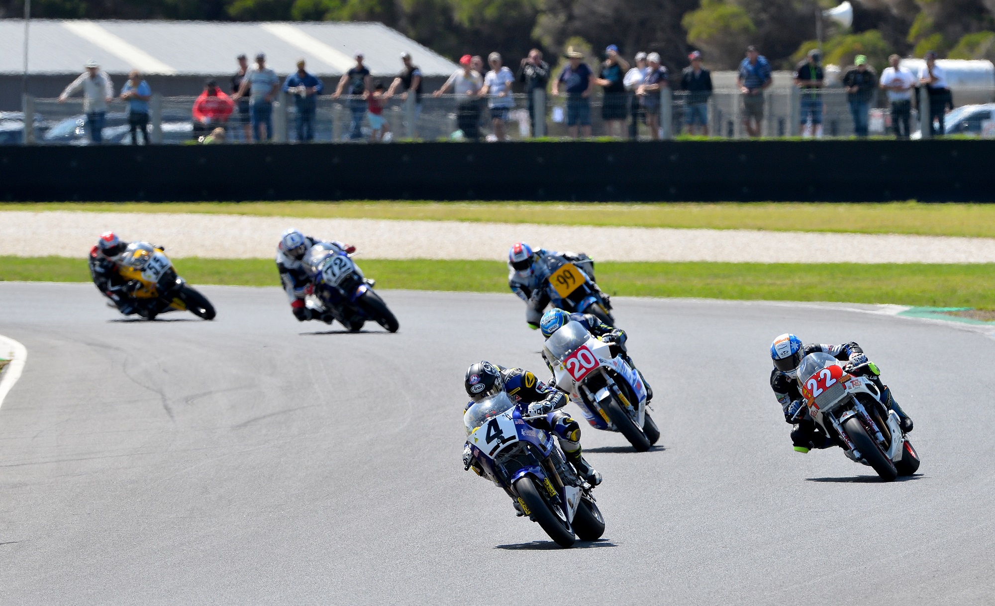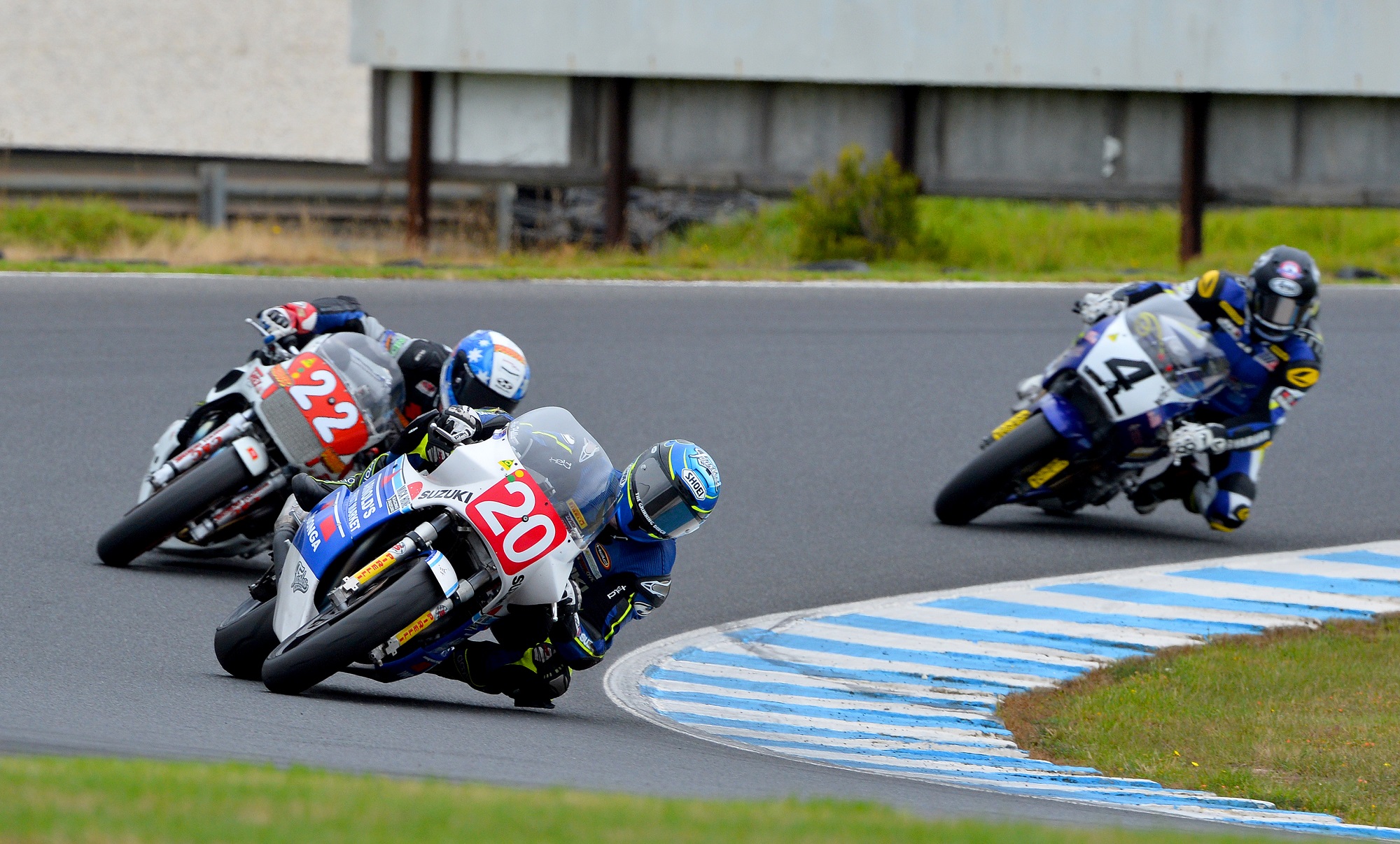 Just behind was Melbourne polesitter Jed Metcher who produced four podium places (3-2-2-2) on his Yamaha FJ to amass 155 points, racing at the front of the pack throughout the meet to make a major contribution to the Australian victory.