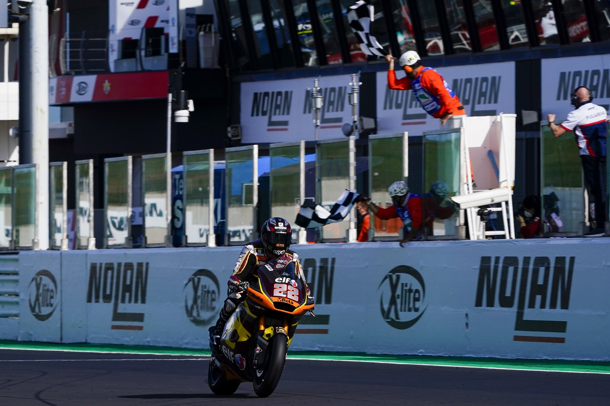 Sam Lowes (Elf Marc VDS) got his elbows out and put his foot down at the Gran Premio Nolan del Made in Italy e dell’Emilia Romagna, getting back on the top step in style at Misano. Teammate Augusto Fernandez made it an Elf Marc VDS Racing Team 1-2 despite a Long Lap penalty from qualifying, with the Spaniard just pipping compatriot Aron Canet after some late technical gremlins made life harder for the Aspar Team rider. Still, he completed the podium for another impressive race at Misano.