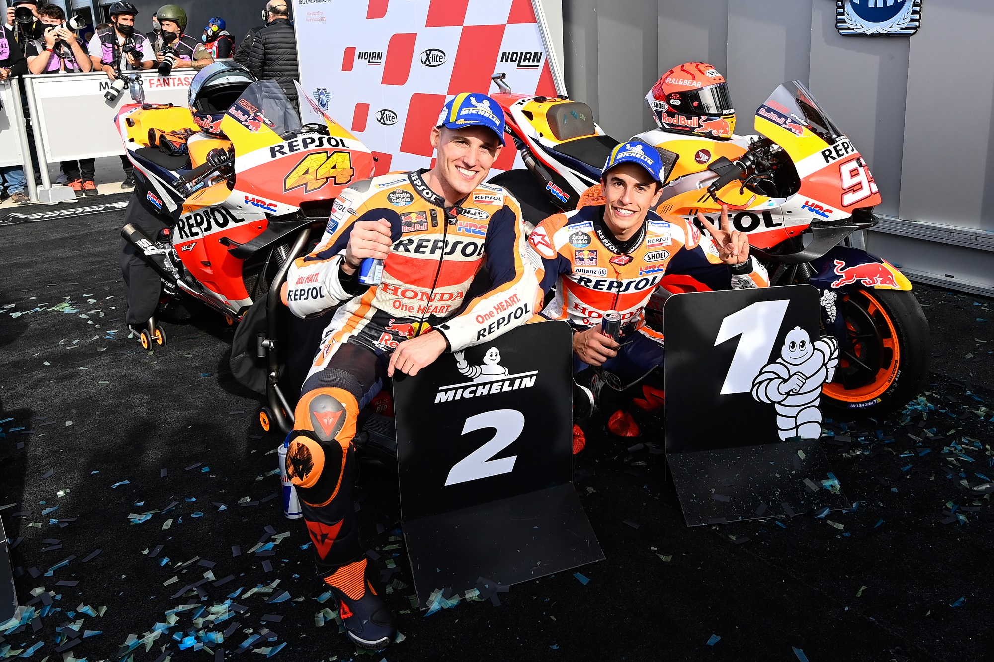 Where do we start? First, the race winner. Marc Marquez (Repsol Honda Team) was back on top in the Gran Premio Nolan del Made in Italy e dell’Emilia Romagna, backing up his stunner at COTA with victory at a clockwise circuit for the first time this season. He was followed home by teammate Pol Espargaro in the first Repsol Honda 1-2 since 2017 and the number 44’s first podium with Honda, with Enea Bastianini (Avintia Esponsorama) putting in another beast of a ride to complete the rostrum on home turf – after a last lap lunge on a newly-crowned World Champion, no less.
