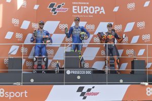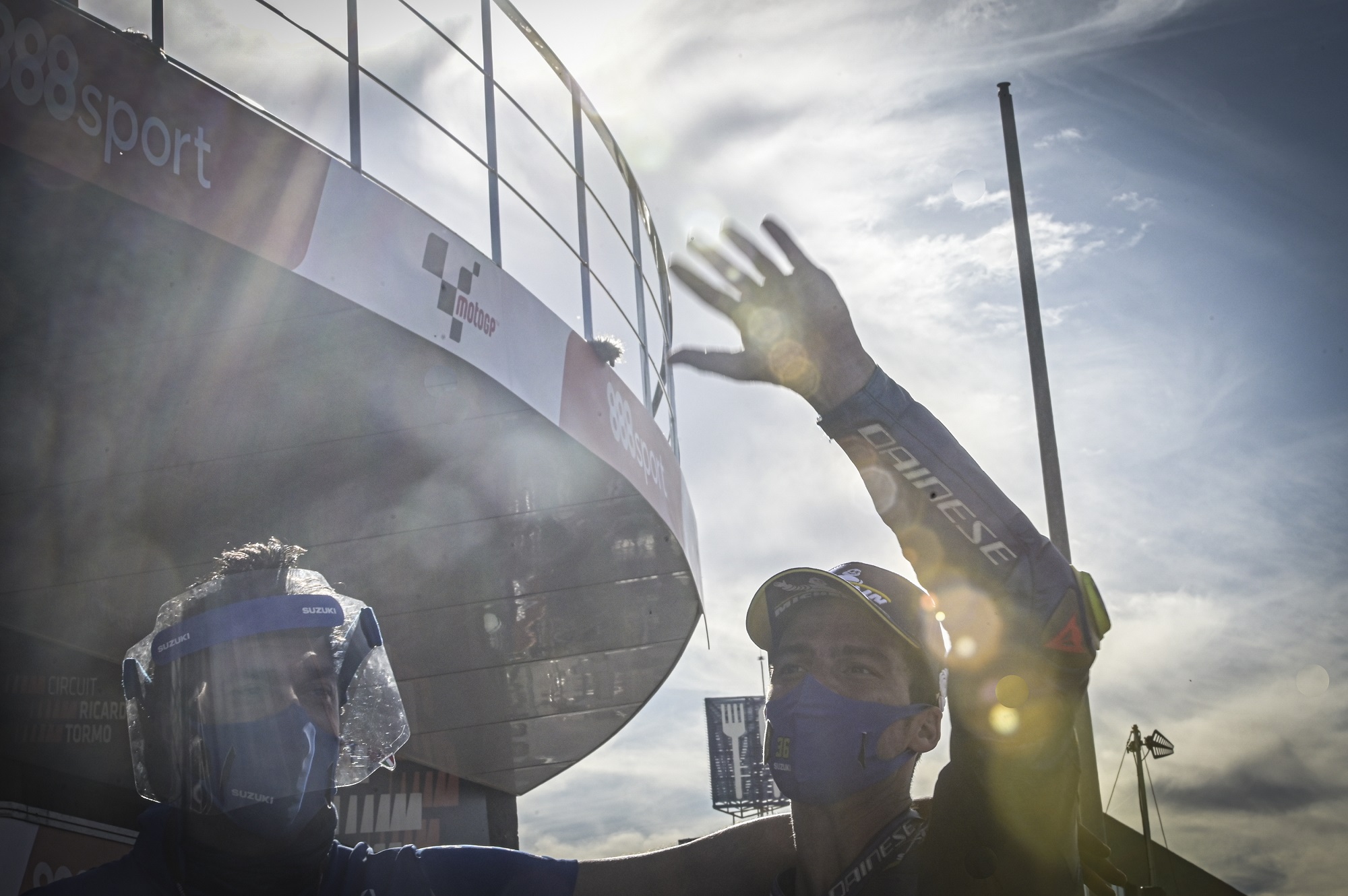 Another race, another chapter written into the history books: Joan Mir (Team Suzuki Ecstar) is now a MotoGP™ race winner. The Suzuki rider was pitch perfect in the Gran Premio de Europa to make his first visit to the top step in the premier class, putting one hand on the crown in the process as he stretches his advantage in the Championship to 37 points. Mir is also the ninth different premier class winner of the year, seeing 2020 equal the record of most winners in a season, and the number 36 sets a new record as the fifth different maiden winner this year. With teammate Alex Rins following him home in second, the day also marked the first Suzuki 1-2 since 1982 and the Hamamatsu factory now lead in the fight for the riders’, constructors’ and teams’ Championships. Pol Espargaro (Red Bull KTM Factory Racing) kept Rins honest as the number 44 took third though, back on the podium at the scene of both his and KTM’s first premier class rostrum finish in 2018.
