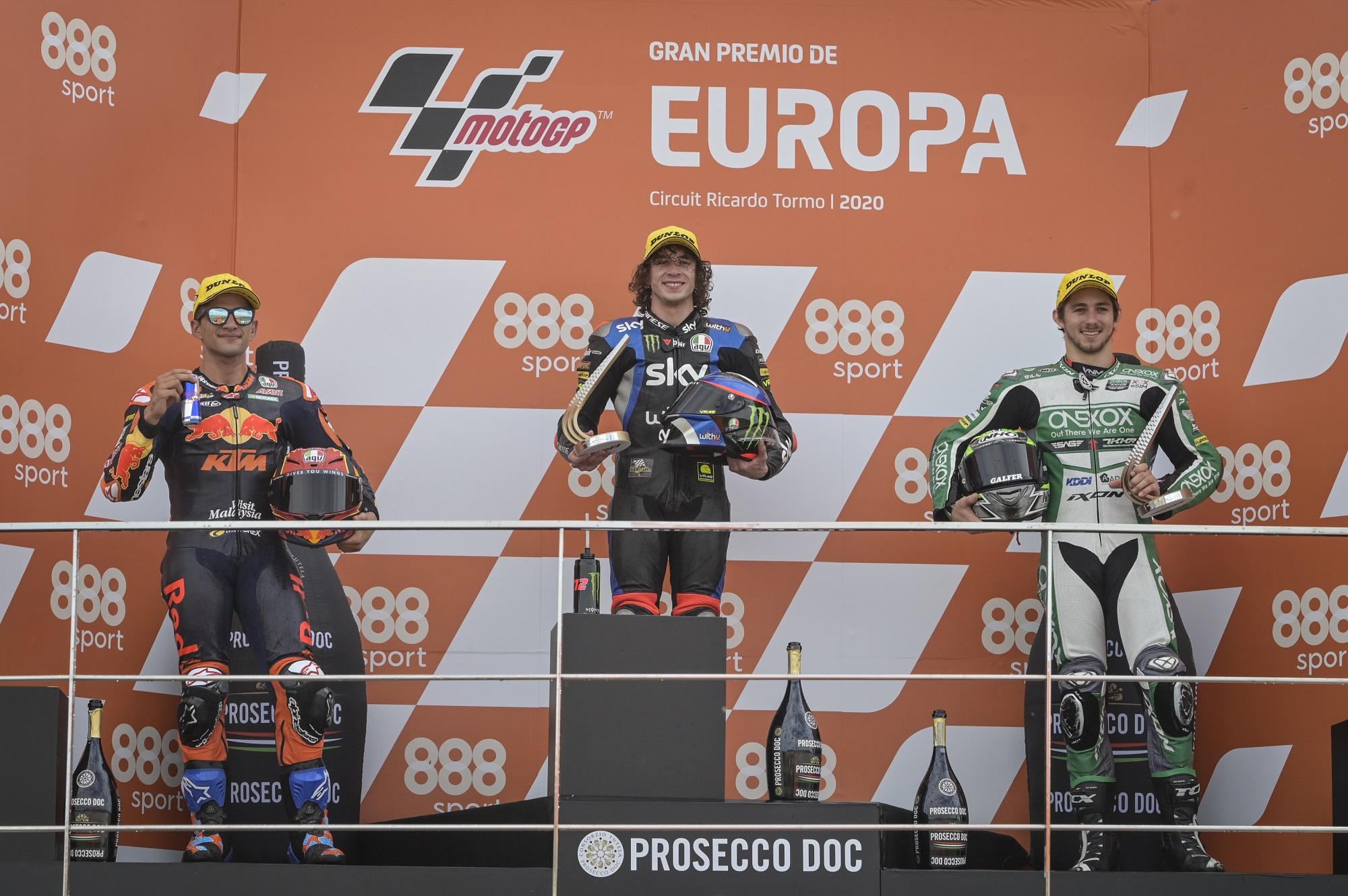 Bastianini was able to hold off Baldassarri for what could be a pivotal fourth place finish, putting the ‘Beast’ six points clear of Lowes in the World Championship with only two rounds left of 2020. Sky Racing Team VR46’s Luca Marini took sixth for a solid result, proving he is far from out of the title chase too. His was a last lap move on Garzo moving him to within 19 points of the top of the Championship. Garzo’s seventh nevertheless equalled his best so far.