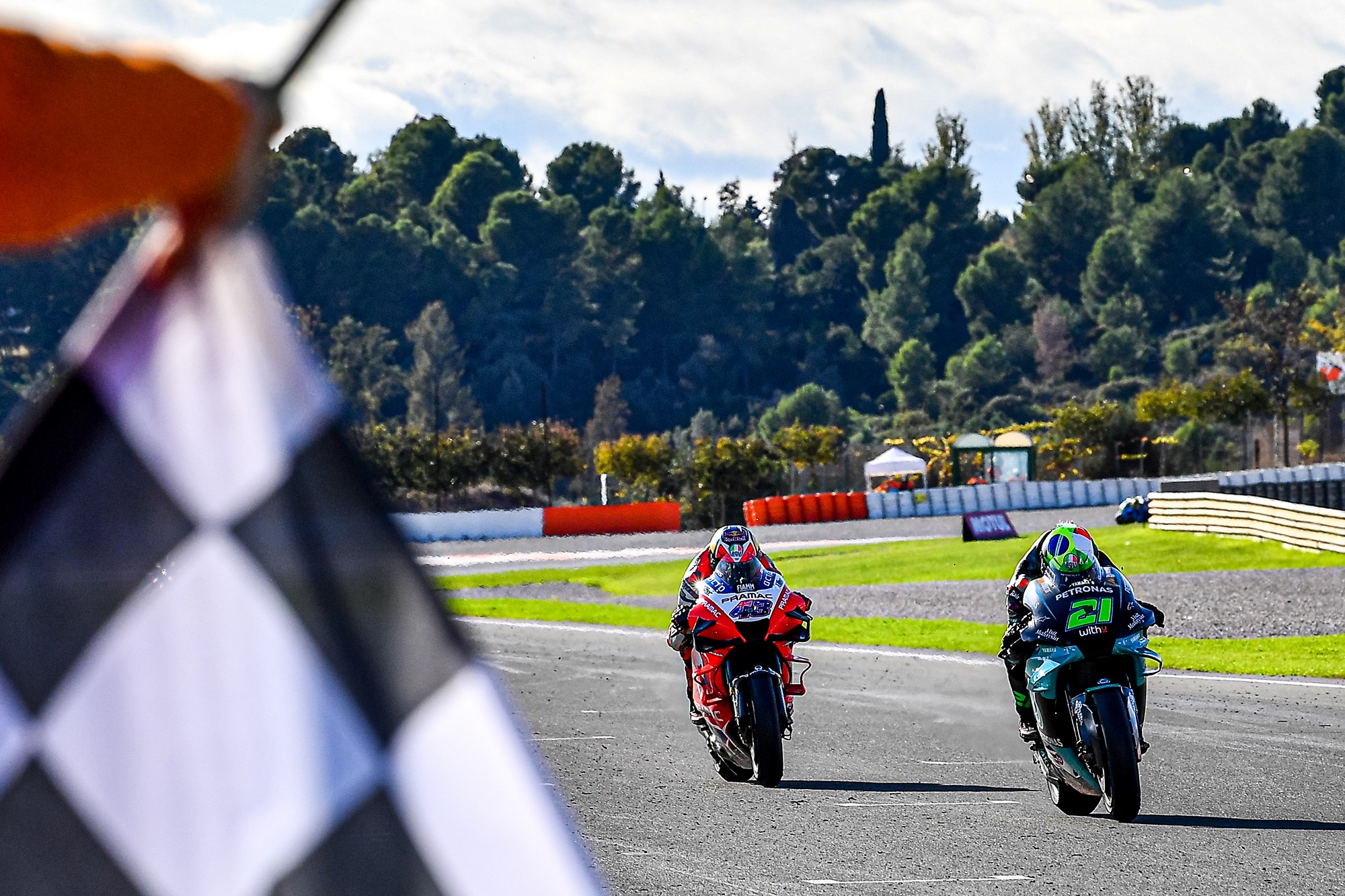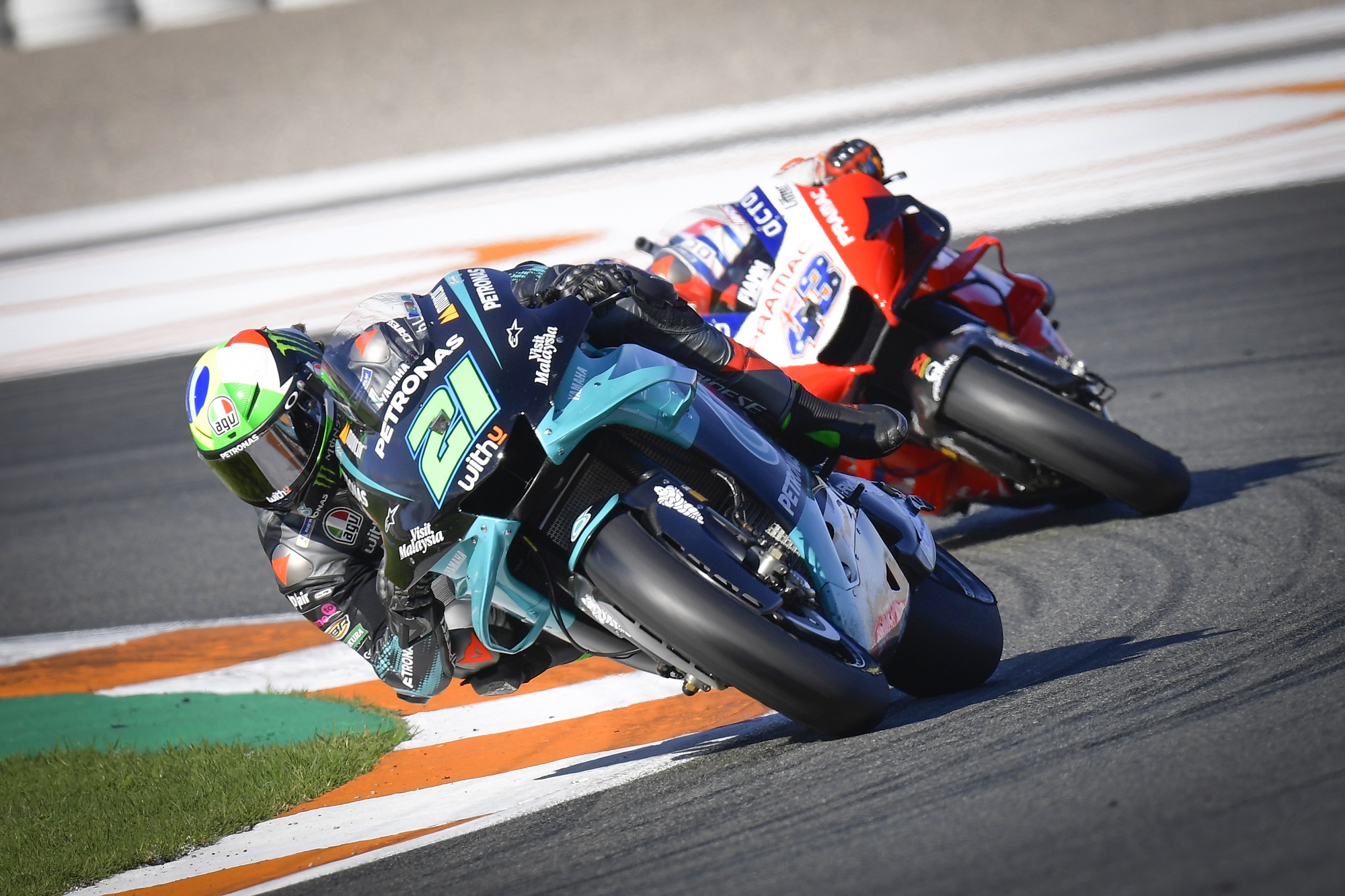Franco Morbidelli (Petronas Yamaha SRT) and Jack Miller (Pramac Racing) put on a spectacular duel in the Gran Premio Motul de la Comunitat Valenciana as a tense race-long chess match turned into a final lap scrap for glory. It was decided by less than a tenth but it’s Morbidelli who comes out on top, gloves off to take his third win of the year and move up to second in the standings. Miller was forced to settle for second in the end, with Pol Espargaro (Red Bull KTM Factory Racing) once again completing the podium. Slightly further back, Joan Mir (Team Suzuki Ecstar) made dreams a reality as he took seventh place and secured the 2020 MotoGP™ World Championship, with key rivals not able to do enough to stop the Majorcan’s history-making charge.