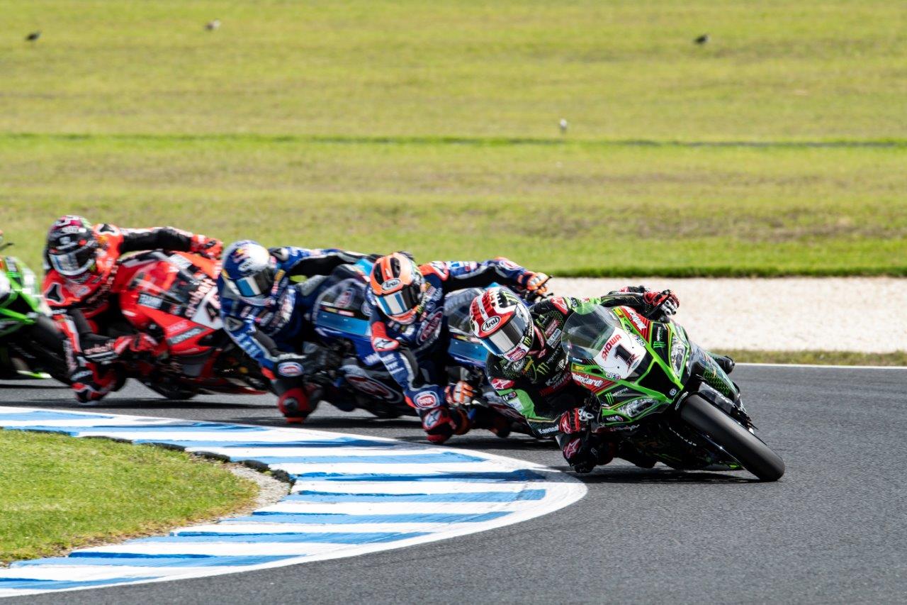 In a superb 22-lap afternoon race where 10 riders were running line astern at Phillip Island during the middle stages, it eventually boiled down to an intra-Kawasaki battle as Rea and Lowes turned the screws on their opposition.
